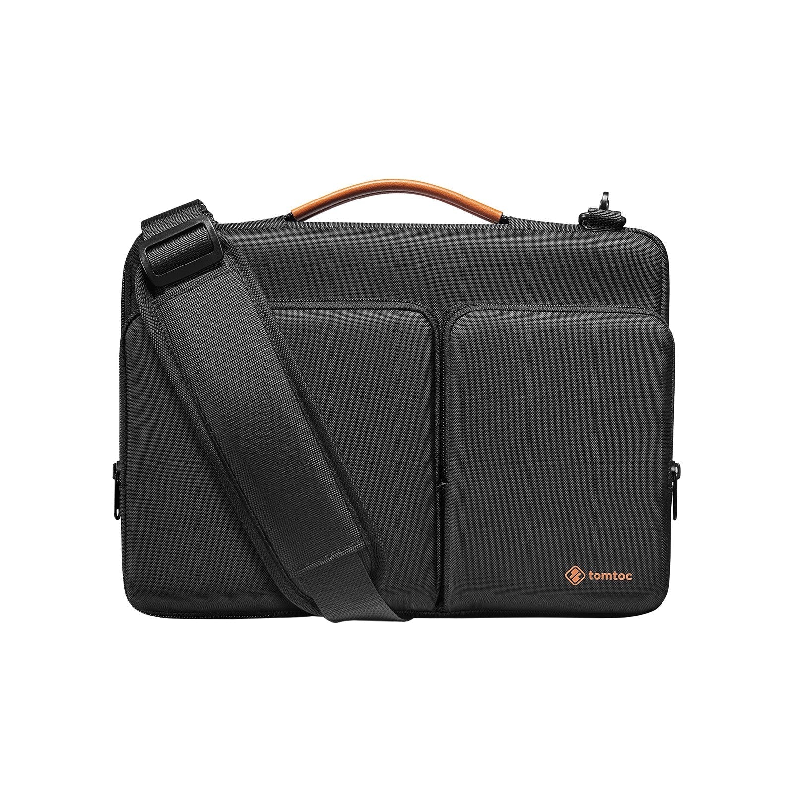 tomtoc's laptop shoulder bag features two front large zipper compartments for additional storage. With penholders, small card pocket, the bag makes it easier than ever to organize your digital accessories.