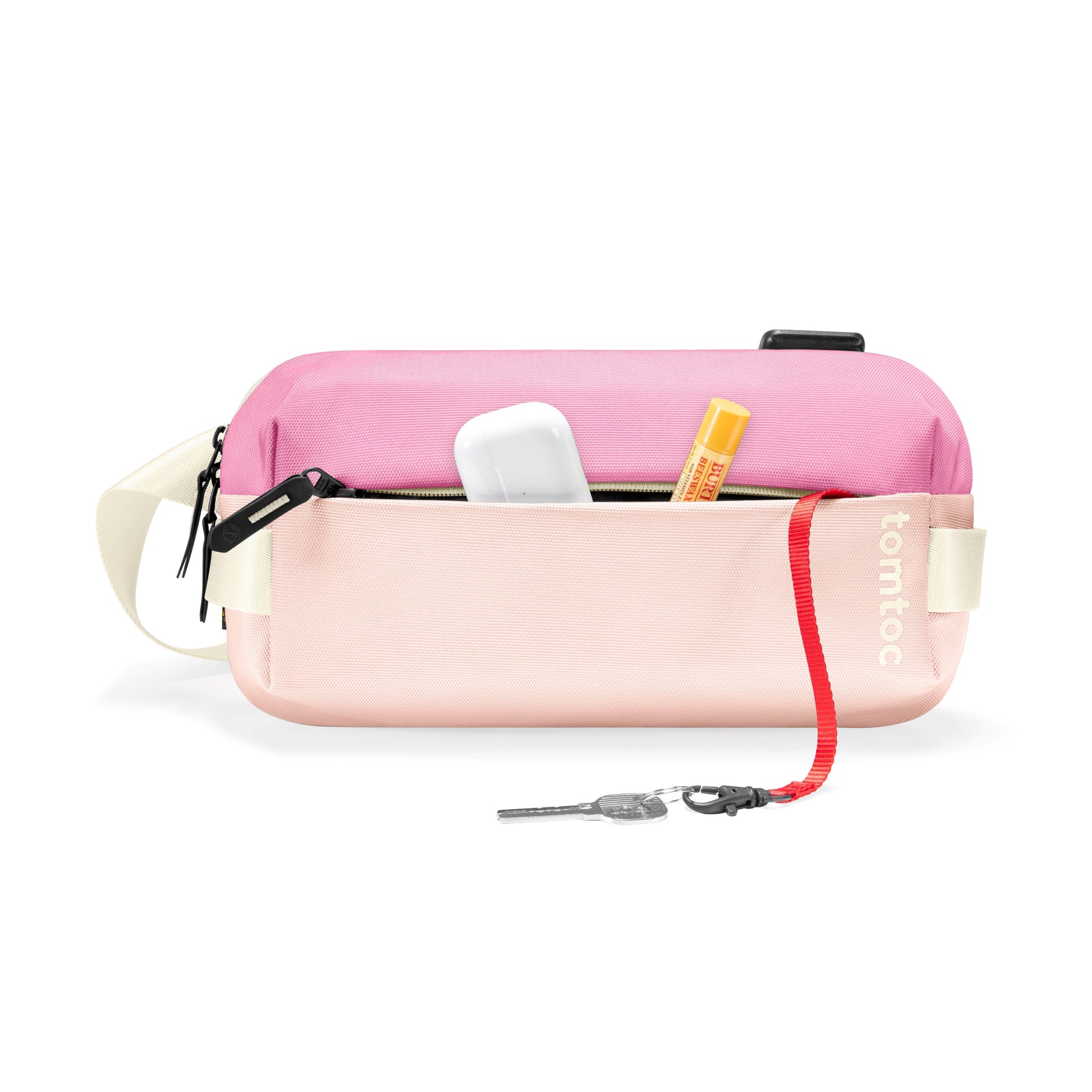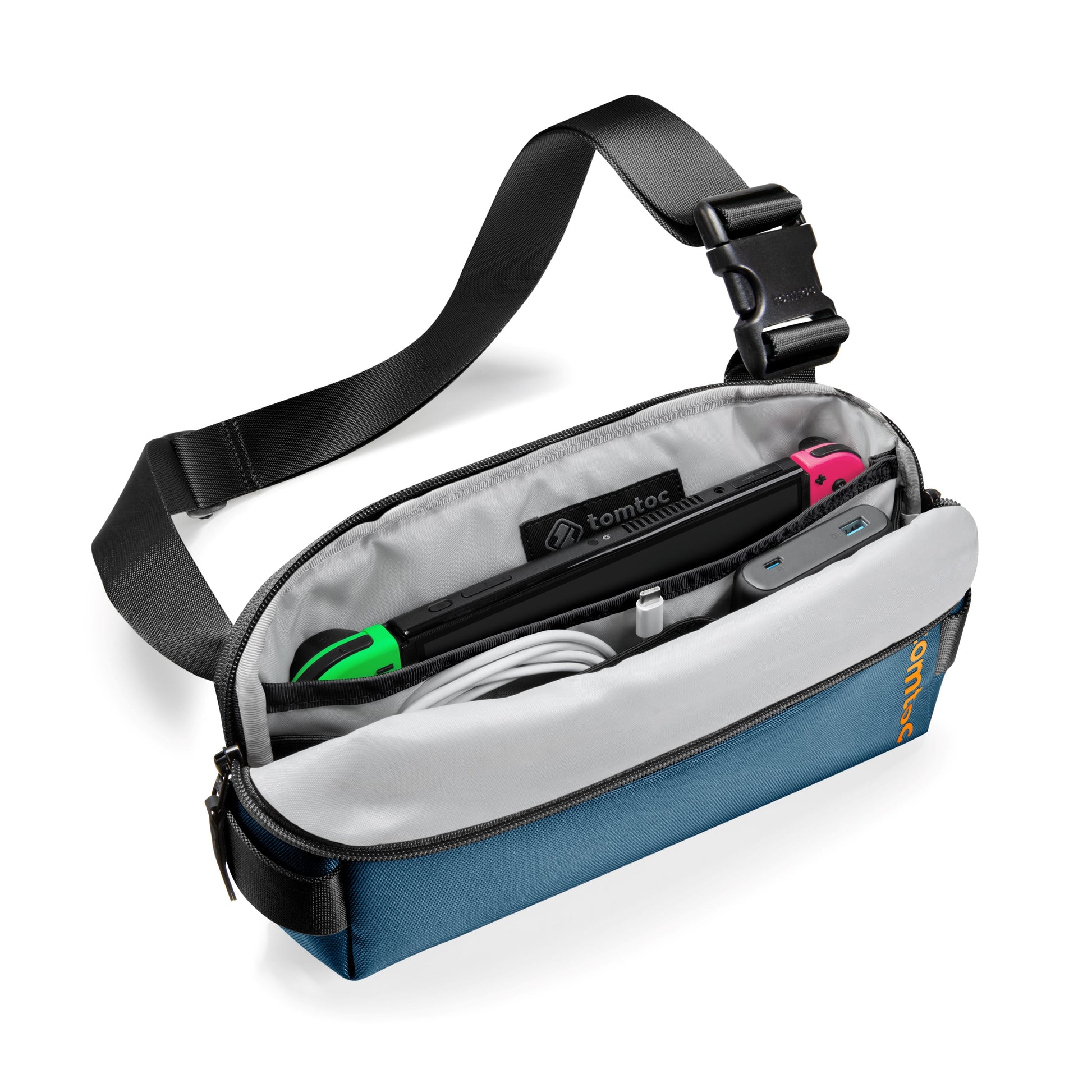 Quick access front pocket for AirPods Pro, credit cards; Multiple internal pockets in the middle for tech devices, such as Kindle, Nintendo Switch console, Power Bank, cable etc. ; Hidden back pocket for your mobile phone or passport.