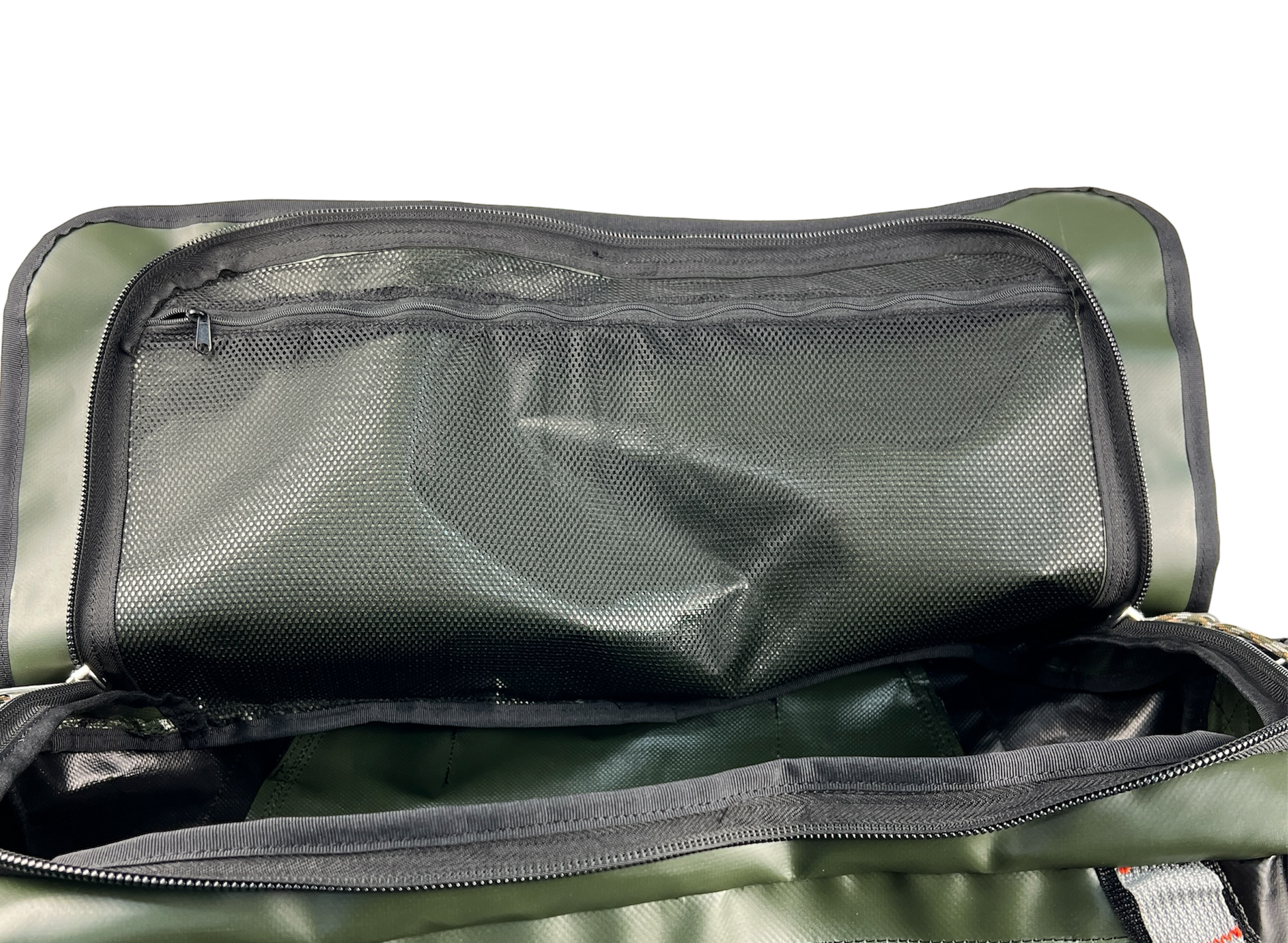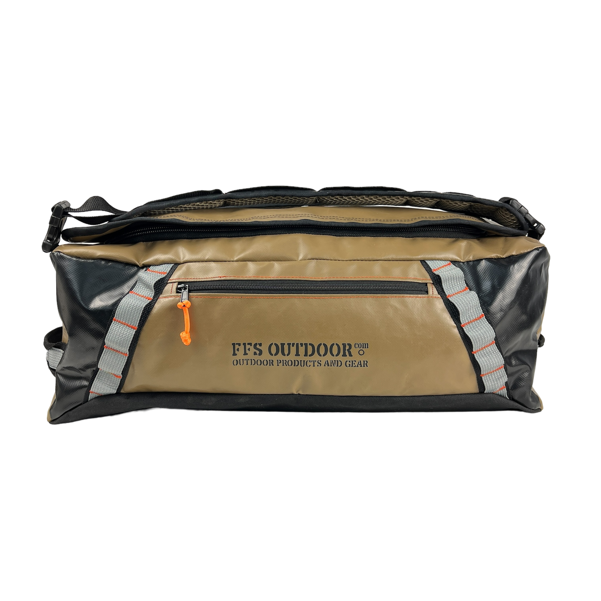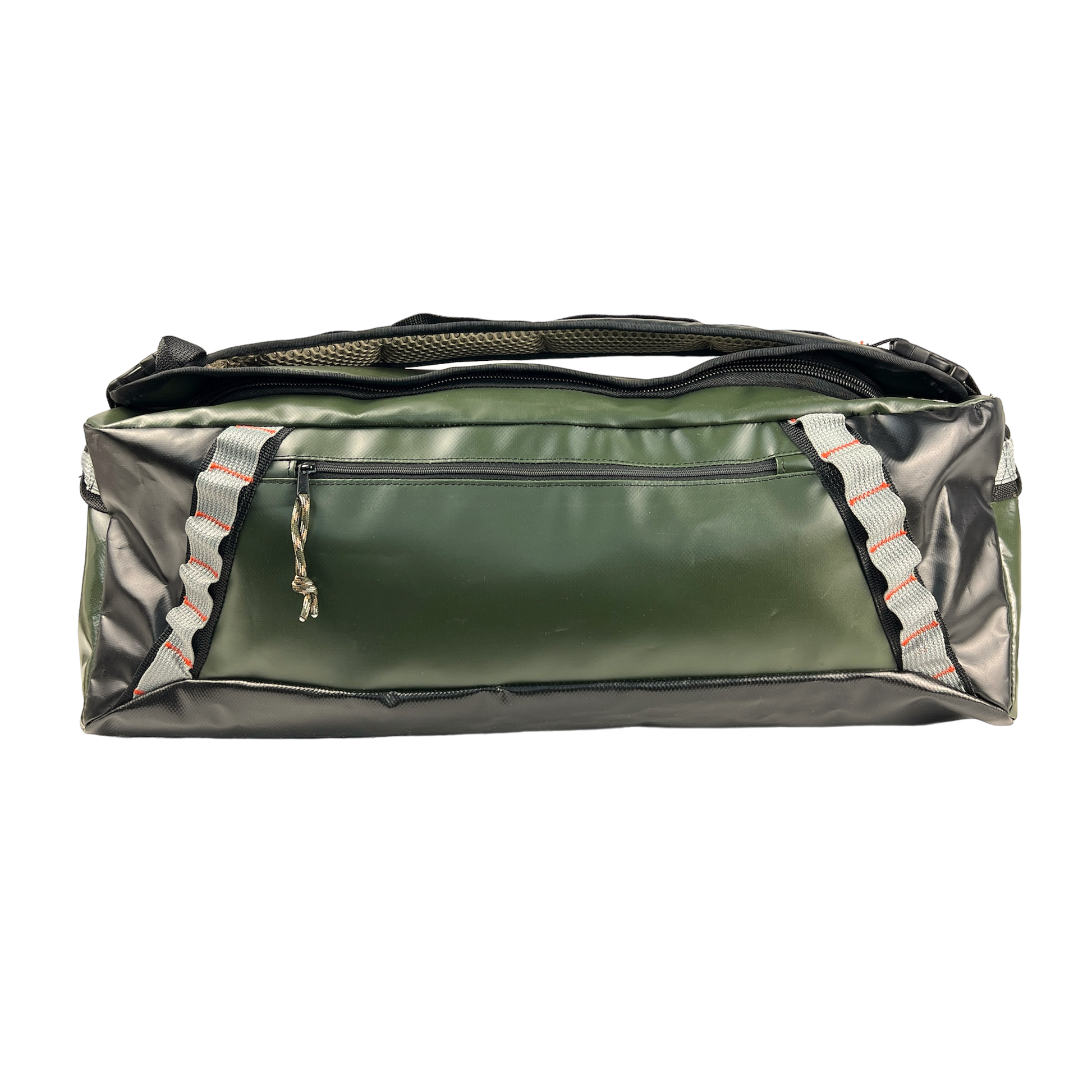 Crafted from rugged, weather-resistant PVC fabric, this duffel bag is designed to withstand tough conditions and keep your gear secure. The spacious main compartment features durable, water-resistant zippers, while a convenient side pocket is perfect for storing personal items.