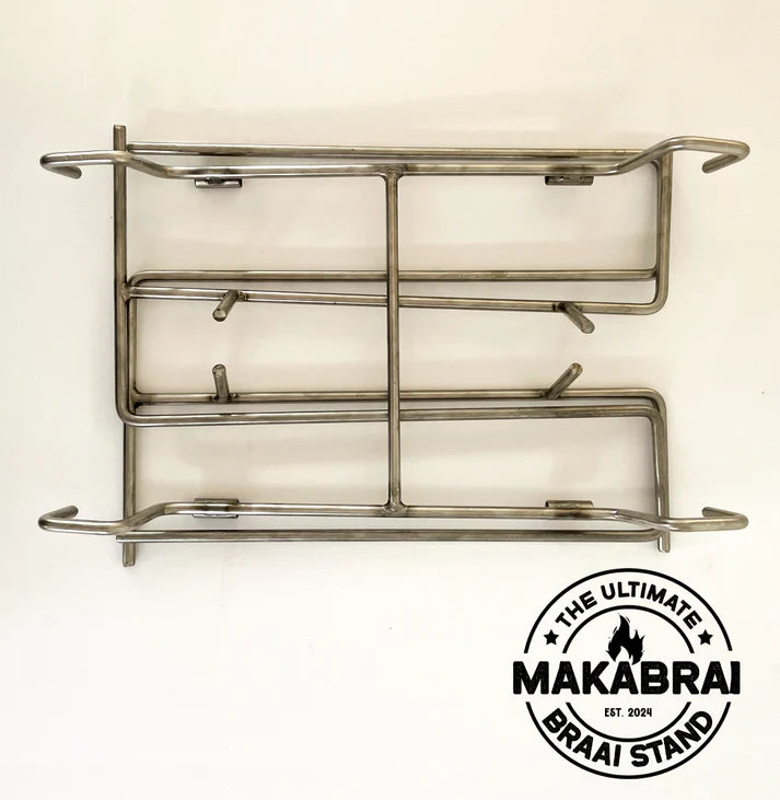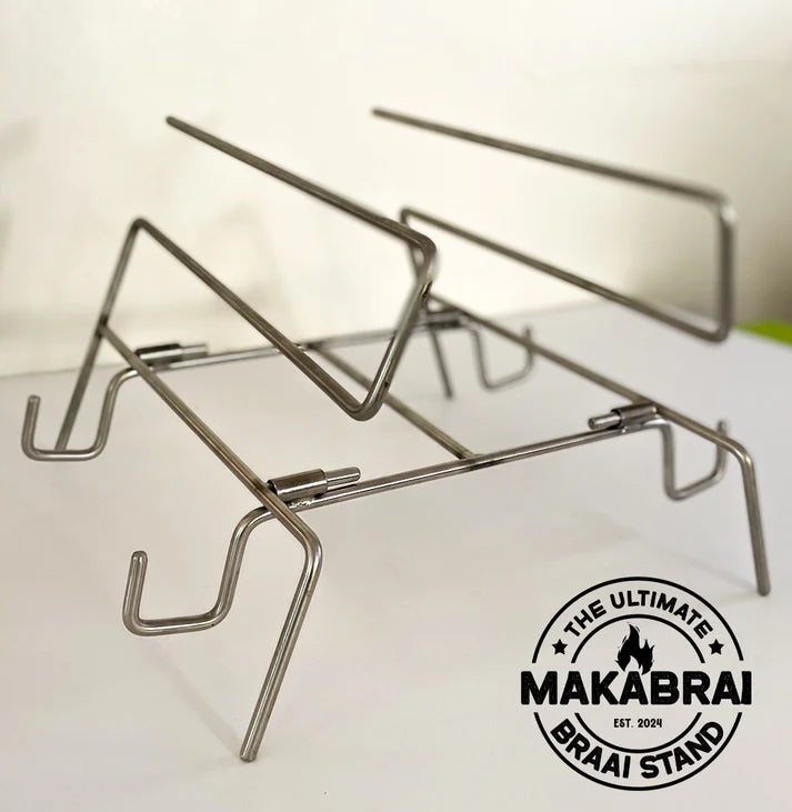 The Makabraai all in one braai stand is a stainless steel braai stand designed for ultimate versatility. Made from high quality 304 stainless steel, it features three adjustable braai levels, two side braai options, and a compact, collapsible design—perfect for any outdoor braai. Easy to assemble and compatible with any foldable grid, it’s the ultimate braai accessory for braaiing anywhere.