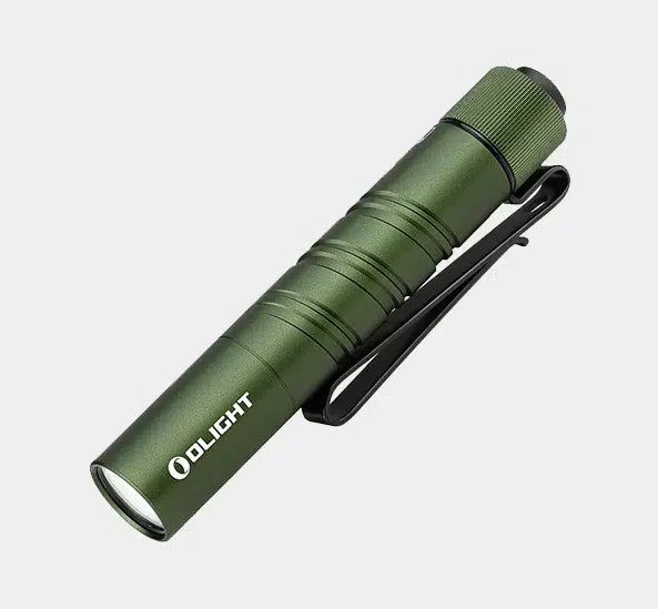 The Olight I3T 2 EOS is constructed from aluminum alloy with a Type III hard-anodized finish in black (also available in colors like OD Green, Sweet Pink, or limited editions like Dragon & Phoenix), offering durability for outdoor conditions like camping or hiking. It measures 89mm in length (3.5 inches) and 15mm in diameter (0.59 inches), weighing 41g (1.5 oz) with the battery, making it slim and lightweight for pocket carry. The flashlight features a double-helix knurling pattern for a secure grip, a two-way pocket clip for deep carry or hat attachment, and a non-slip design, though some users find the clip may snag on thicker materials, suggesting careful placement. This makes the I3T 2 a durable, compact choice for outdoor use, though users should adjust carry to avoid snagging and protect it from prolonged submersion.