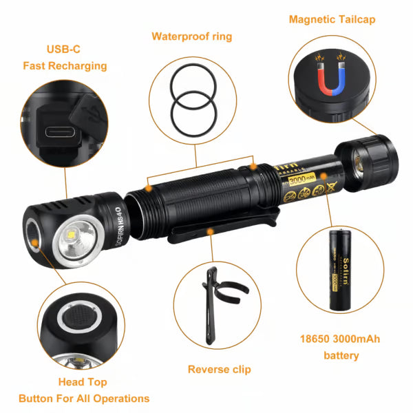 The Sofirn HS40 2000 Lumen 175m Throw Rechargeable Headlamp with 18650 Battery for Outdoor Use is tailored for hikers, campers, and outdoor enthusiasts needing a reliable, hands-free light for nighttime activities, repairs, or emergencies. For example, its 400-hour low mode ensures prolonged runtime for extended trips, and the detachable design allows use as a handheld flashlight, though the side switch UI requires practice to cycle through modes (single click to turn on/off, hold for ramping, four clicks for lockout), and the magnetic tail cap may not suit all surfaces. The USB-C charging and IPX8 rating enhance its reliability, but users should avoid direct eye exposure due to its intensity. The HS40’s affordable price, included 18650 battery, and multifunctional design make it a practical choice for outdoor scenarios, offering a balance of power and convenience, though users should plan for heat management and UI familiarity.