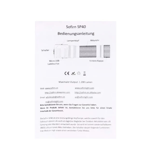 The Sofirn SP40 1200 Lumen 136m Throw Rechargeable Headlamp with 18650 Battery is a versatile, lightweight light designed for outdoor activities, ideal for camping, hiking, and repair tasks. For example, its 1200-lumen output can illuminate a path up to 136 meters, ensuring reliable visibility. With built-in micro-USB charging, a side switch interface, and a durable build, it offers practical functionality. Featuring a 1-year warranty, this Sofirn SP40 for Outdoor Use suits campers, hikers, and DIY enthusiasts.