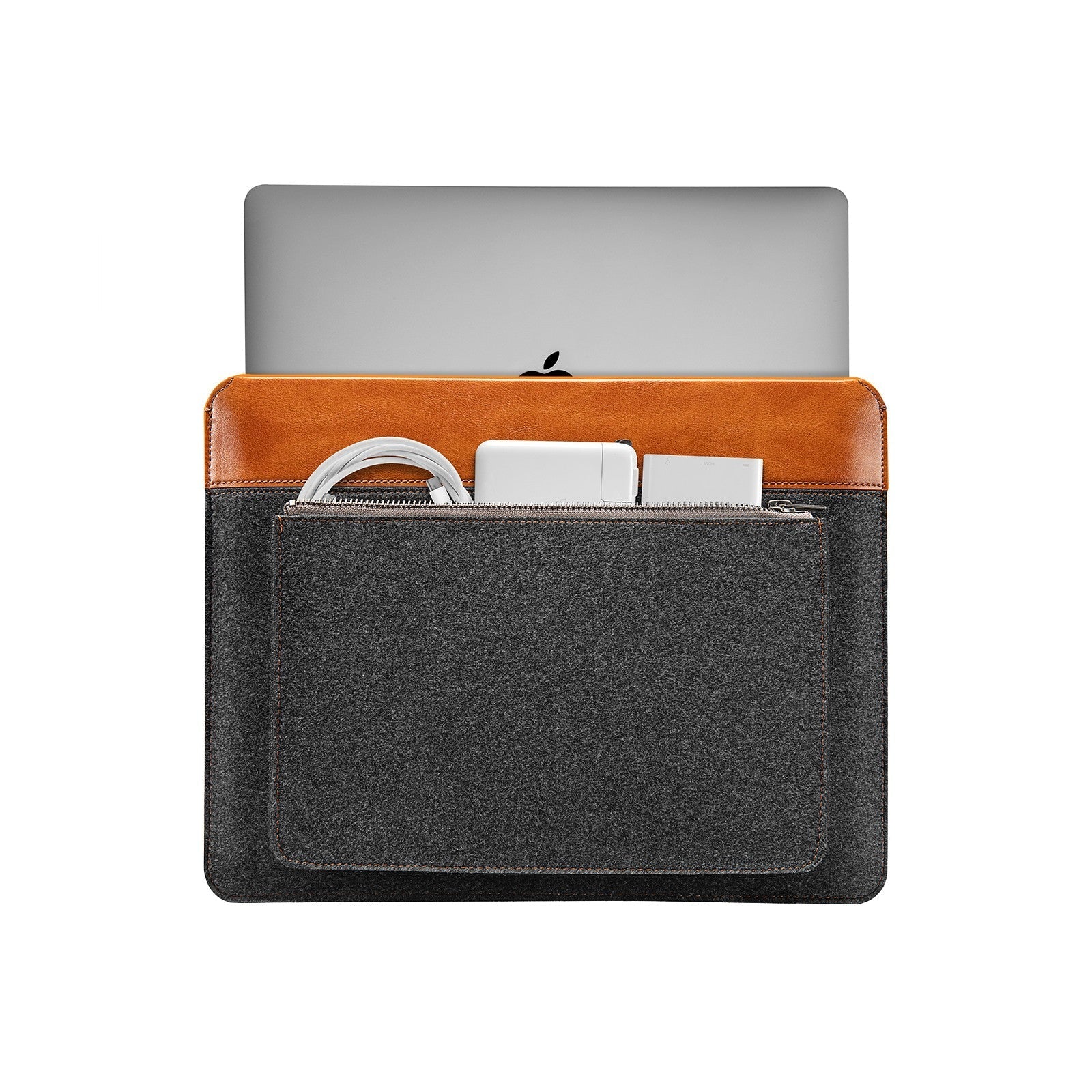 The ultra slim design made of smooth felt & Artificial leather on the outside and soft microfiber padding on the inside provides protection from scratches and bumps without appearing bulky. This tomtoc sleeve makes it easy to be carried solo or fit in your favorite handbag or backpack for more protection.