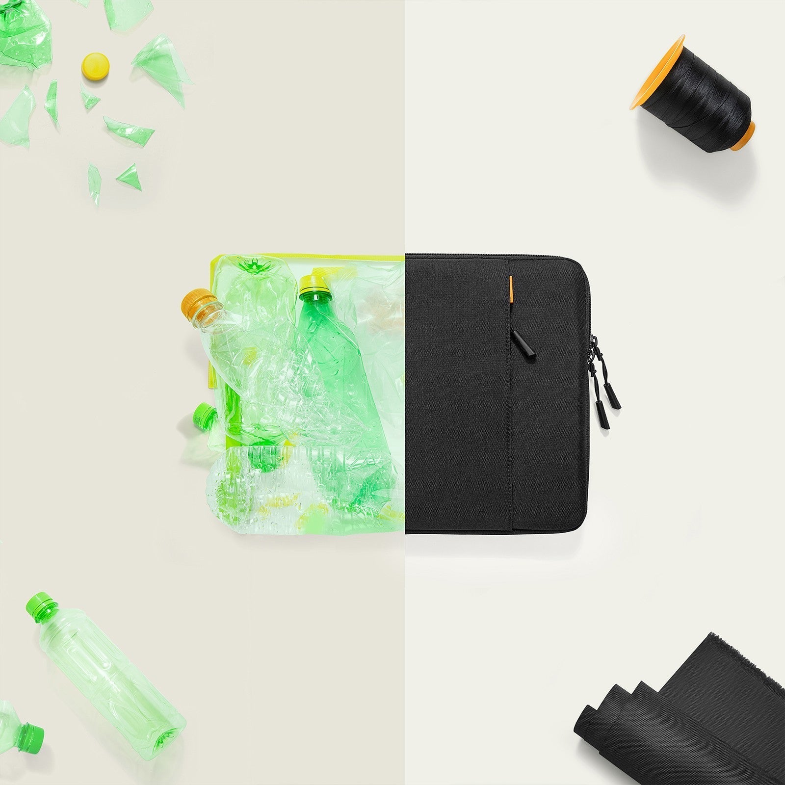 In effort to support environmental protection, we created this sleeve with durable recycled fabric, that is 100% Post-Consumer material made from PET plastic bottles. We are committed to providing daily protection for your laptop while also being environmentally friendly, using repurposed plastic into everyday products that benefit you and our planet.