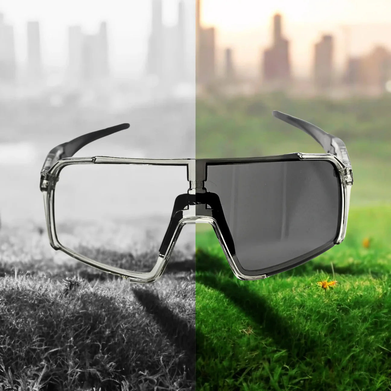 Intelligent photochromic cycling sunglasses automatically lighten or darkens in response to changing light conditions without needing to switch between lenses en sunglasses. The lenses are UV400, so they block 100% of the harmful UVA & UVB rays to protect your eyes