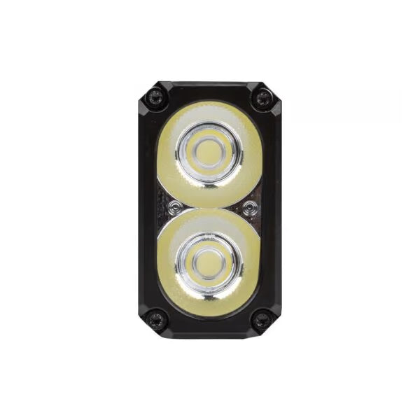 The Wuben E7 features dual Osram P9 LEDs, delivering up to 1800 lumens and a 130-meter beam throw with 4225 candela for a flood beam suitable for close to mid-range tasks. It’s powered by an included 1100mAh 18350 Li-ion battery, offering the following modes and runtimes: